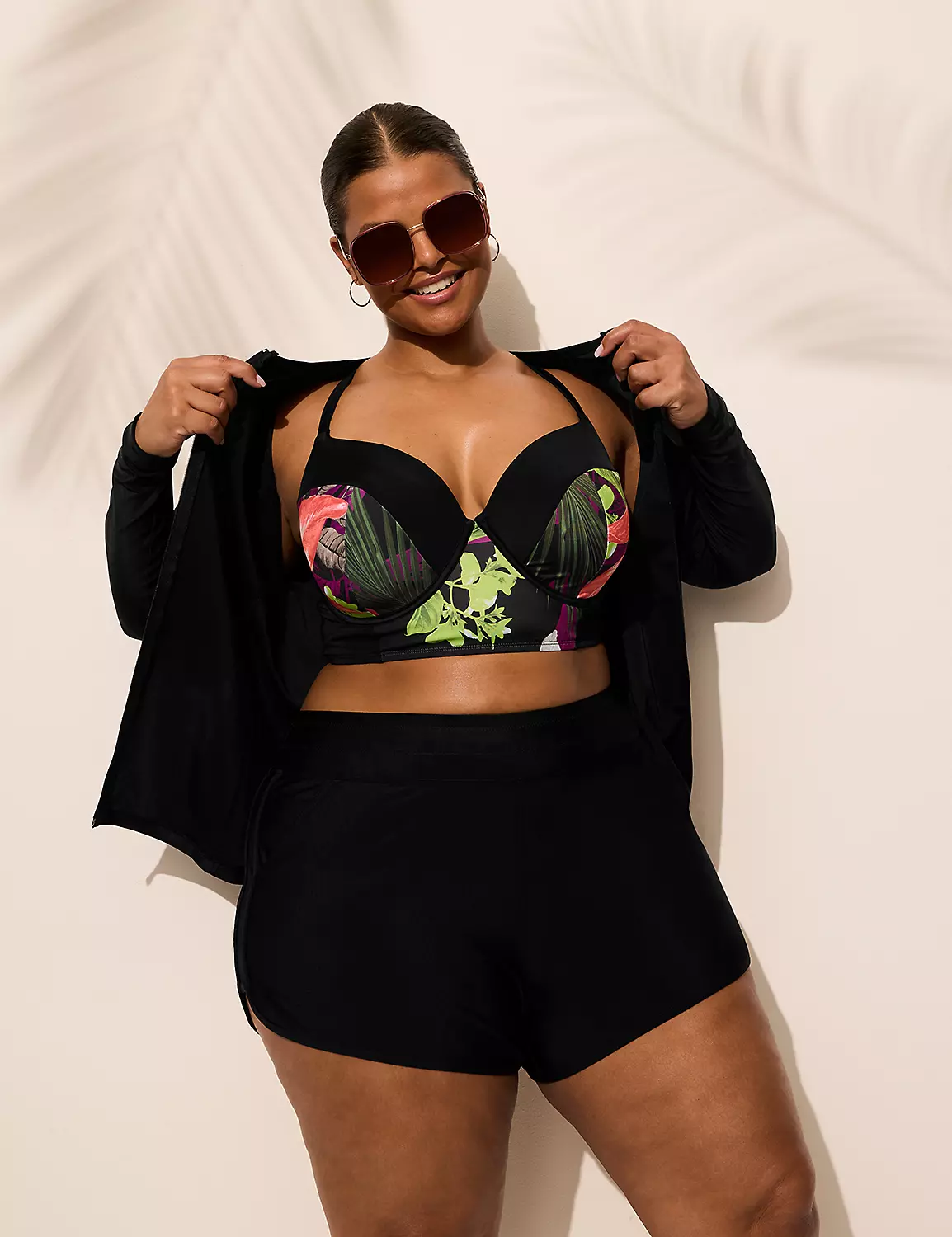 Layer this long-sleeve rash guard with cool color block side panels over your swim top for extra comfort and coverage that looks as good as it feels!