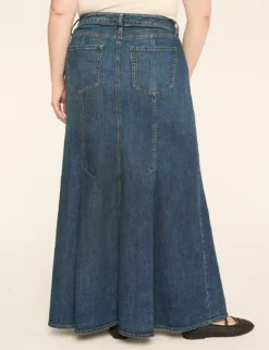 The Well Versed Denim Maxi Skirt. It brings old school denim cool to so many looks — from feminine blouses to graphic tees and laidback sweatshirts. Now in a totally twirlable silhouette.
