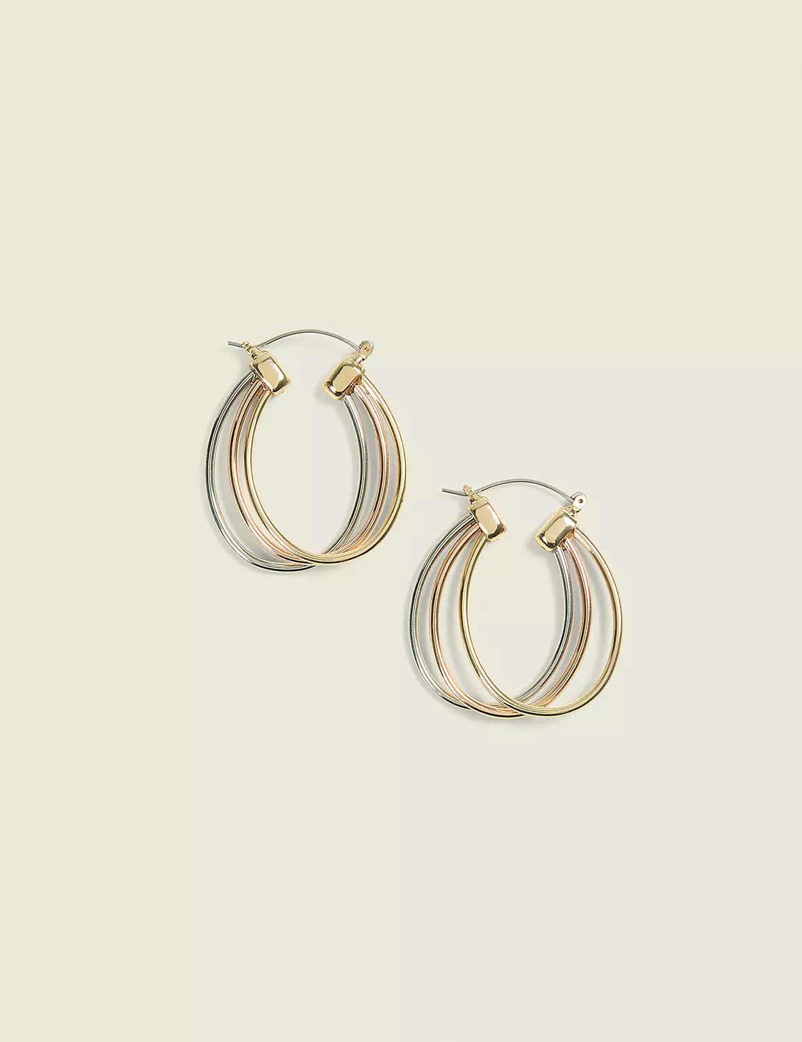 A pair of earrings with interlocking oval shapes in mixed metals (AKA you can wear them with everything).