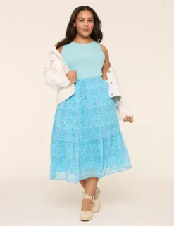 Drawstring-Waist Tiered Midi Skirt Blue Paisley